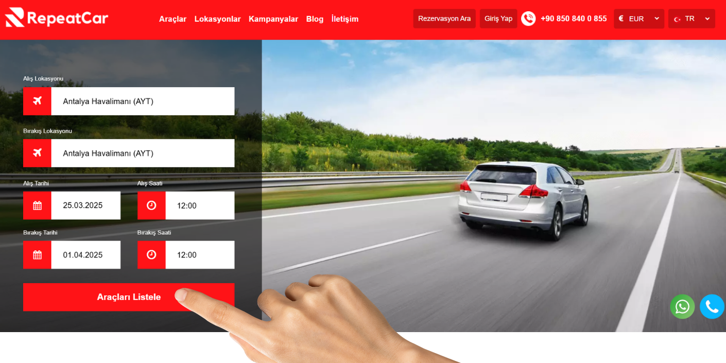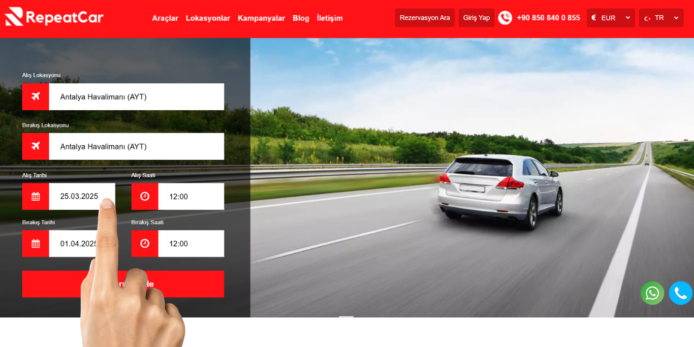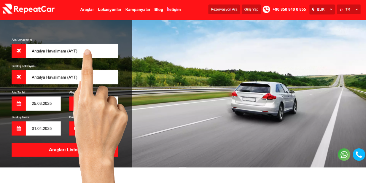 1- Wählen Sie den Abhol- und Rückgabeort des Fahrzeugs aus, das Sie mieten möchten