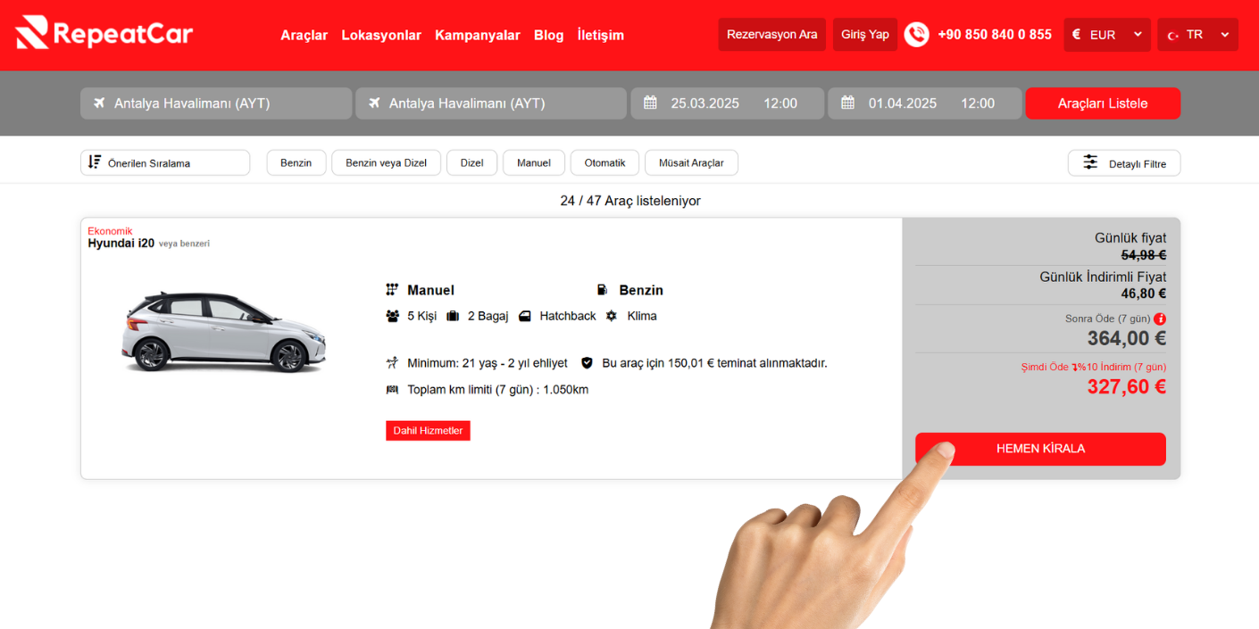4- Finden Sie das passende Fahrzeug aus der Liste und klicken Sie auf „Jetzt mieten“